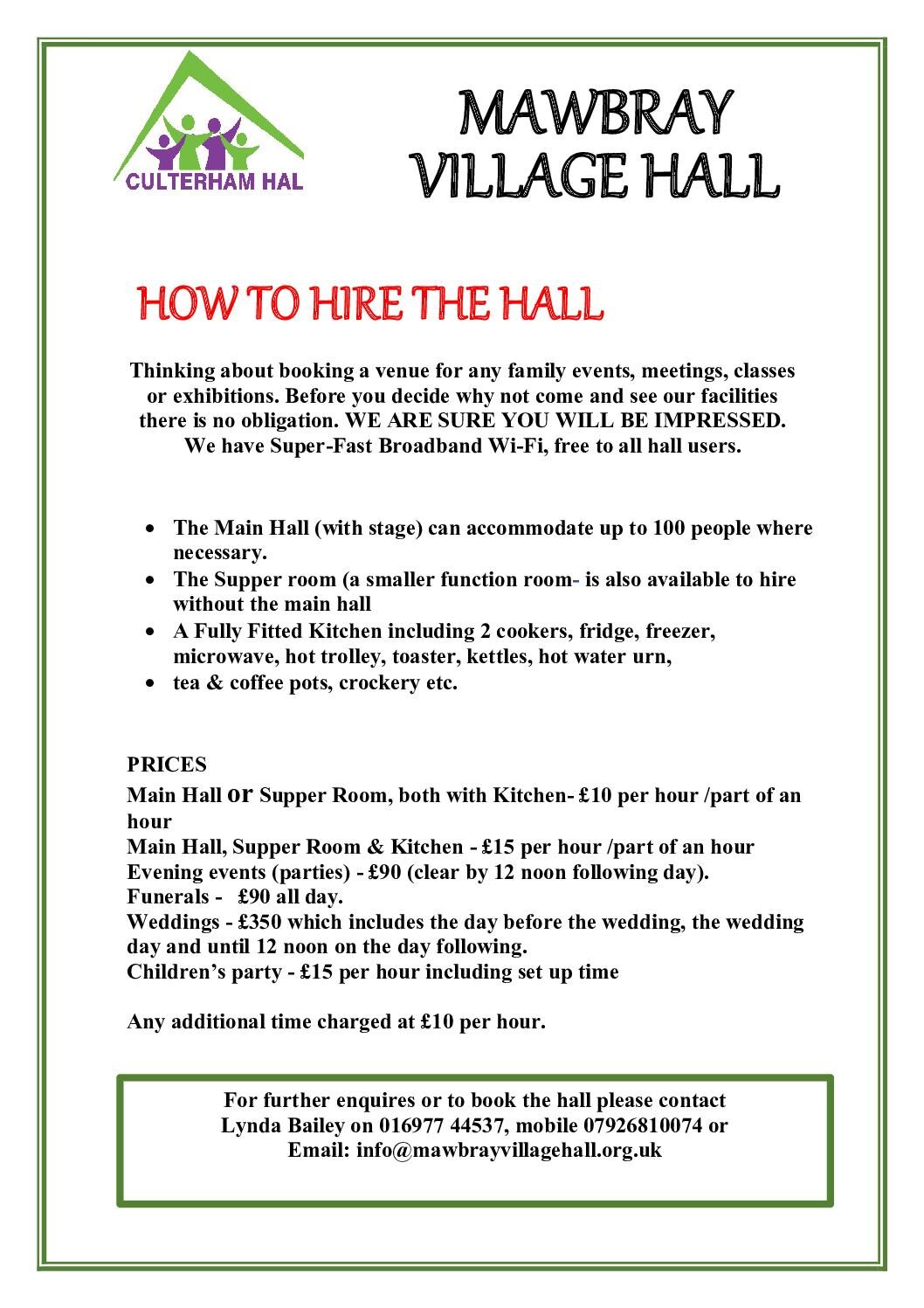 Details of Room Hire